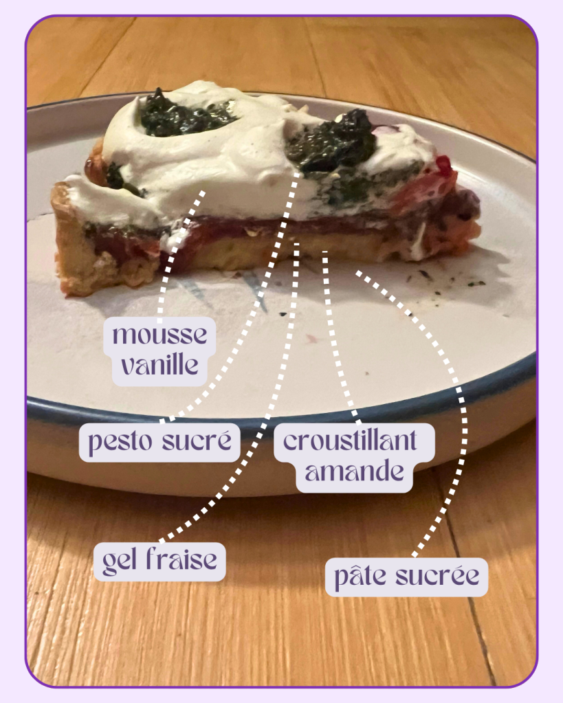 - Dans le fond de tarte, le croustillant amande huile d’olive étalé